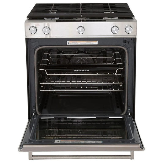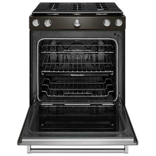 KitchenAid KSGG700EBS 30" Gas Slide-In Range - 5 Burners, Convection Oven, Storage Drawer